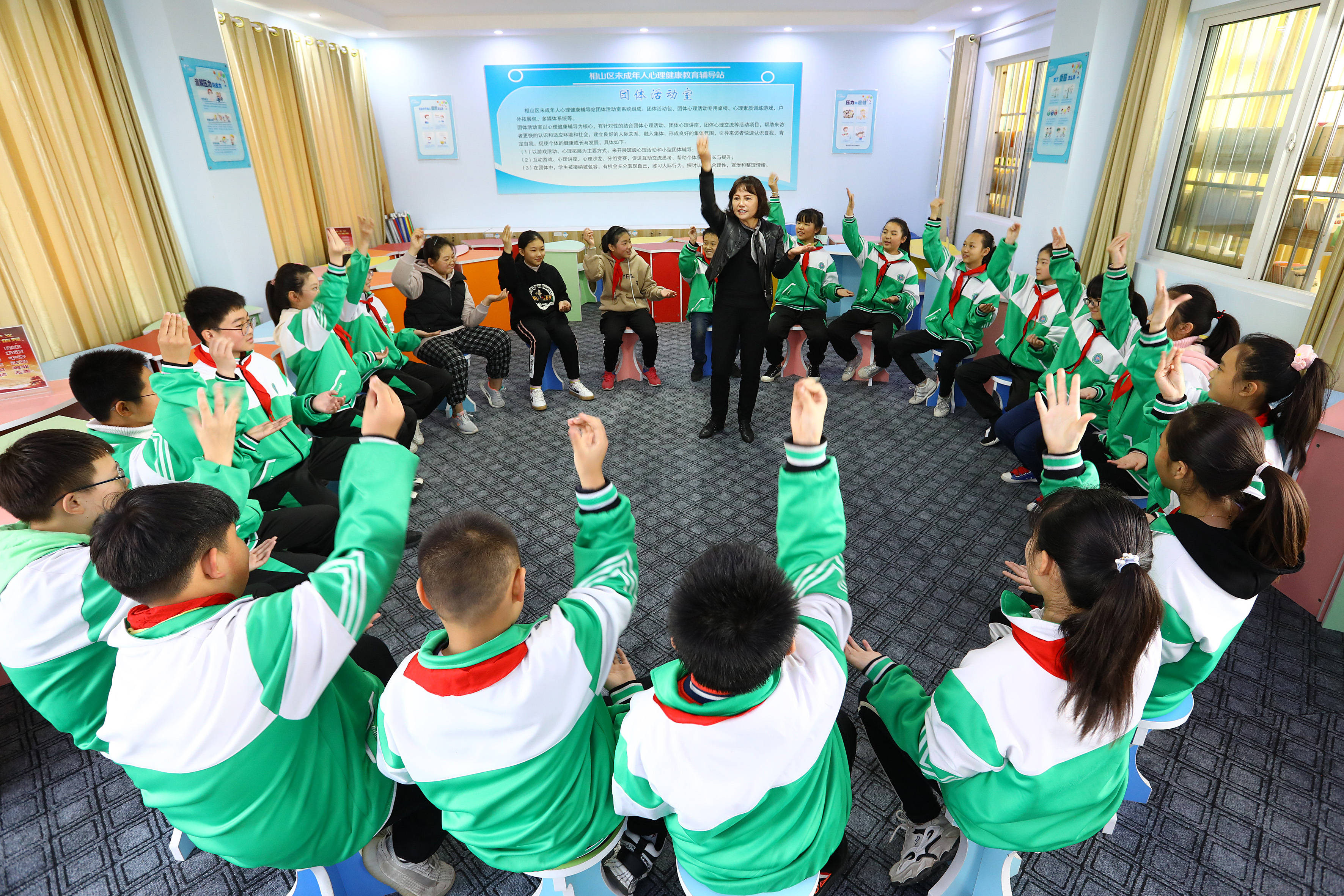 11月15日,安徽省淮北市翠峰小學(xué)學(xué)生在相山區(qū)未成年人心理健康輔導(dǎo)站團(tuán)體輔導(dǎo)室做游戲。