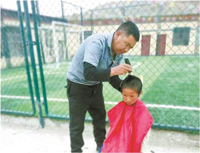 才旦多吉每兩周給學(xué)生洗一次澡,每個月給他們理一次發(fā)。他自己買了理發(fā)工具,研究怎樣剪出孩子們喜歡的發(fā)型,一開始理出的頭發(fā)總是不整齊,想給學(xué)生做個洋氣的發(fā)型,也總是做得奇形怪狀。后來理發(fā)的次數(shù)多了,水平就提升了。才旦多吉笑稱自己是“鄉(xiāng)村版的托尼老師”。