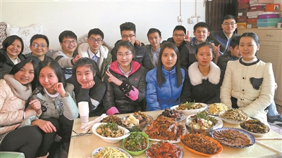 2017年春節(jié),考上大學(xué)的部分受助學(xué)生返鄉(xiāng),和張彥杰、李友生夫婦(第二排左一、二)一起過(guò)年。
