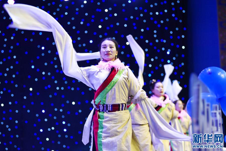 演員在西藏那曲第二屆高校畢業(yè)生創(chuàng)業(yè)大賽決賽現(xiàn)場(chǎng)表演(11月30日攝)。新華社記者 張汝鋒 攝