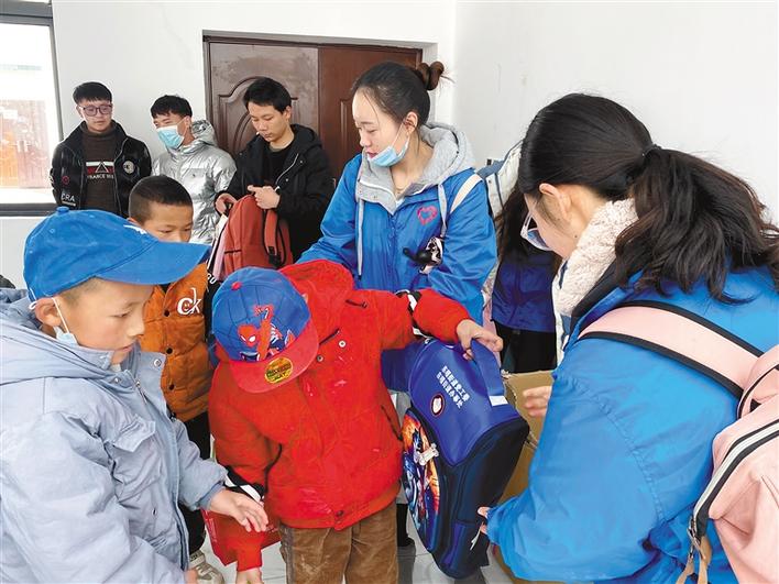 圖為拉薩市堆龍德慶區(qū)志愿者為參加活動的學生分發(fā)書包等禮品。拉巴桑姆 攝