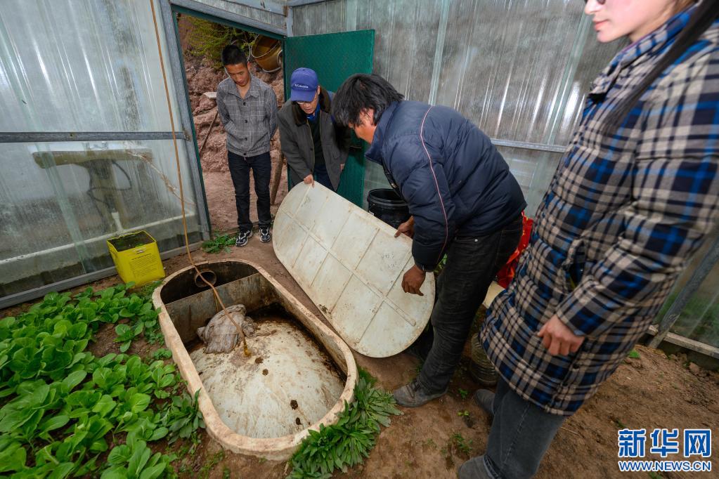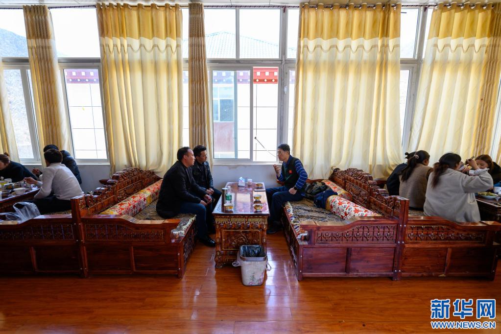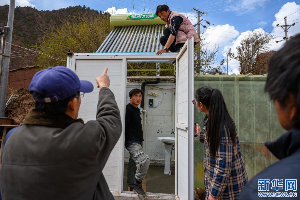 5月2日,在西藏昌都市類烏齊縣濱達鄉(xiāng)濱達村,李純民(左二)在當(dāng)?shù)卮迕裣虬桶偷牵ㄓ叶┘抑胁榭凑託夤薜氖褂们闆r。新華社記者 劉金海 攝