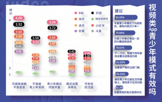 面對目前各平臺青少年模式良莠不齊的現(xiàn)狀,參與測評的大學(xué)生也有自己的見解。在剛剛畢業(yè)1年的95后教師姜煒眼里,部分軟件青少年模式下推薦的內(nèi)容不能滿足青少年的興趣?!昂每匆曨l給我推薦的都是動畫片,我教的高中生不太感興趣;小紅書的青少年模式入口有點難找,找到以后推薦給我的都是考研相關(guān)內(nèi)容,對未成年人來說可讀性不高;斗魚、虎牙這類直播平臺,本身大部分都是游戲類內(nèi)容,青少年模式下幾乎大多數(shù)內(nèi)容都會被屏蔽,我相信任何使用這兩款軟件的青少年都不愿意使用青少年模式?!辈贿^,他給抖音和B站打了高分?!斑@兩款軟件的推送內(nèi)容除了有興趣類的,還有一些名師課程,符合青少年的興趣?!?/p>