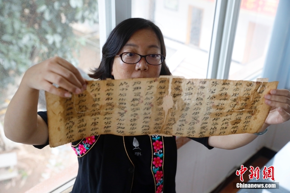 9月8日,云南楚雄,修復(fù)師檢查剛修復(fù)出來(lái)的古籍。楚雄彝族文化研究院位于云南省楚雄彝族自治州楚雄市,是云南省從事彝族文化專門研究的社會(huì)科學(xué)研究機(jī)構(gòu)。該院始終注重對(duì)彝文古籍的收集、翻譯、整理等搶救性工作,現(xiàn)已收集了近3000部彝文古籍。 中新社記者 李嘉嫻 攝