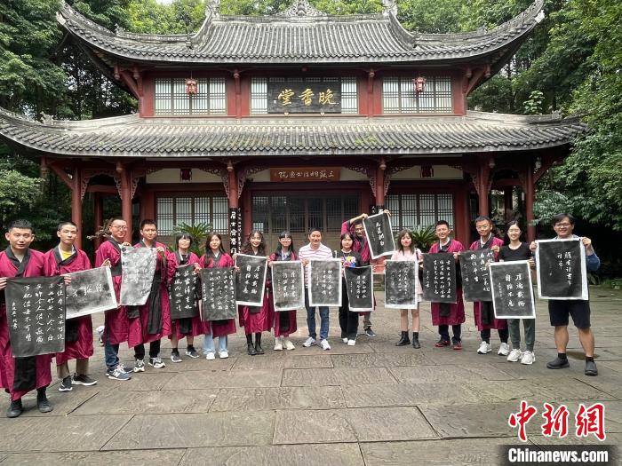 上香、祭文、行祭拜禮……在三蘇祠,臺(tái)灣大學(xué)生穿上漢服開(kāi)展了祭拜活動(dòng),深入了解了中國(guó)傳統(tǒng)文化和禮儀。同時(shí),在趣味拓片活動(dòng)中,不少學(xué)生做了“但愿人長(zhǎng)久,千里共嬋娟”字樣的拓片,表達(dá)了對(duì)中秋佳節(jié)的美好祝福。