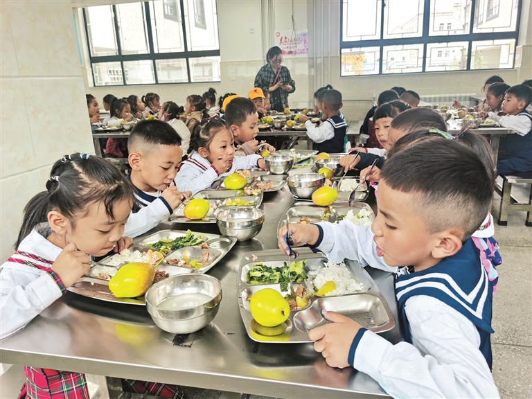 “學(xué)校沒有提供午餐前,中午特別忙。我是在路上趕,母親在家里忙,把小孩接回家吃飯,吃完后馬上又要趕回學(xué)?!,F(xiàn)在學(xué)校提供午餐,實(shí)在是太方便了?!崩_市第一小學(xué)四年級(jí)學(xué)生家長央金說道。
