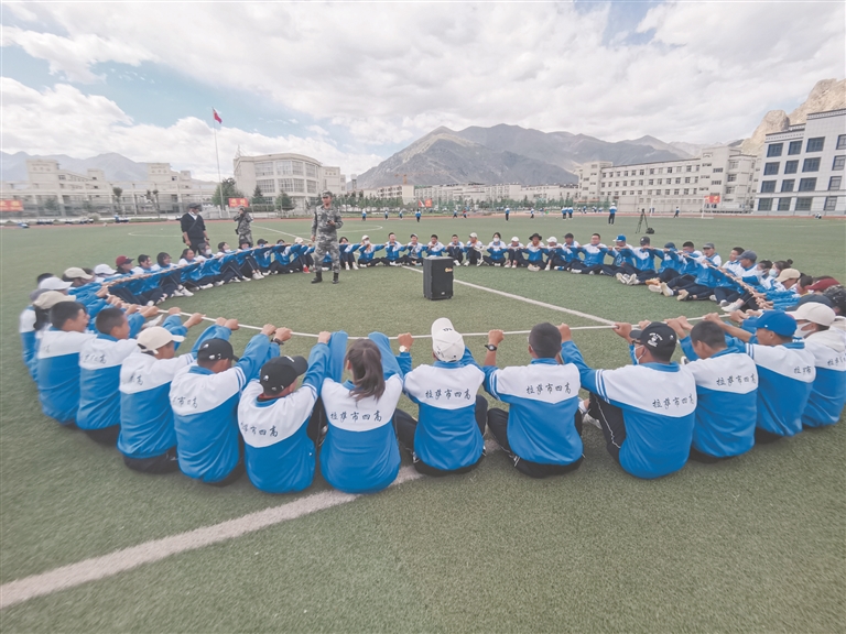 圖為動力圈游戲環(huán)節(jié),同學們合力轉(zhuǎn)圈。拉薩融媒記者 郝奕凝攝