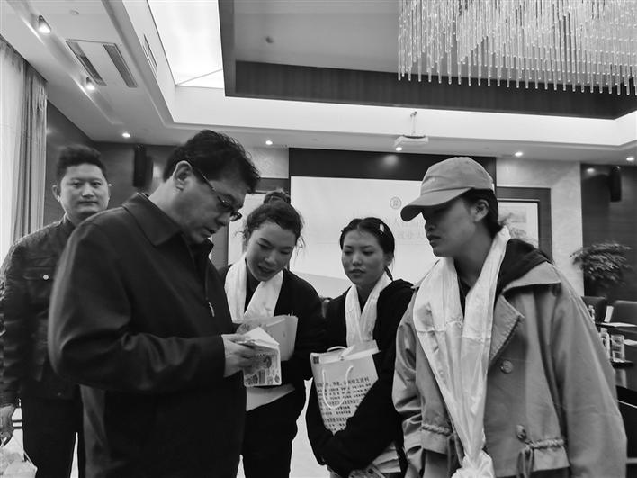 “工資有多少,工作跟得上嗎,生活怎么樣?”山南市人社局黨組書記雷豐詢問著?!袄棕S書記非常關(guān)切地詢問了我們的近況,聽著鄉(xiāng)音,身在異鄉(xiāng)的我們非常開心?!币嫖髑湔f。