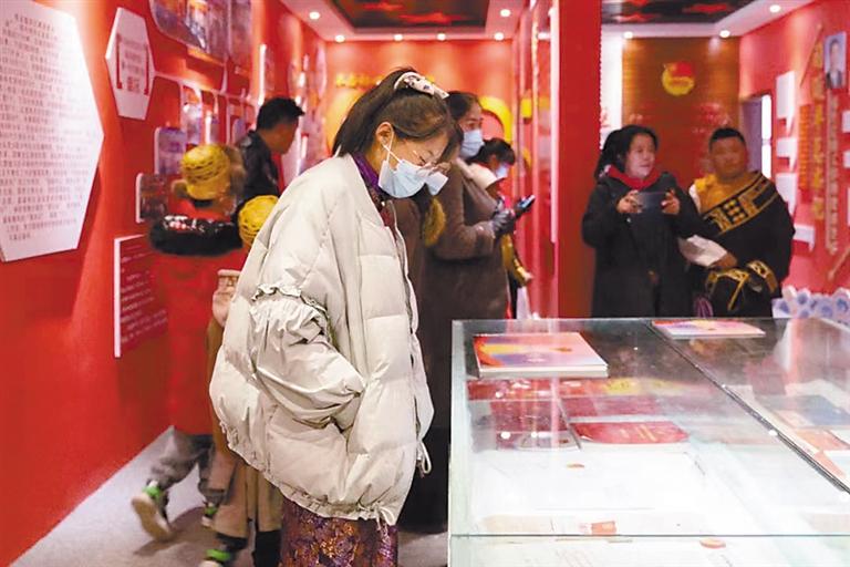 圖為青少年和家長代表參觀團(tuán)史館。記者 拉巴桑姆 攝