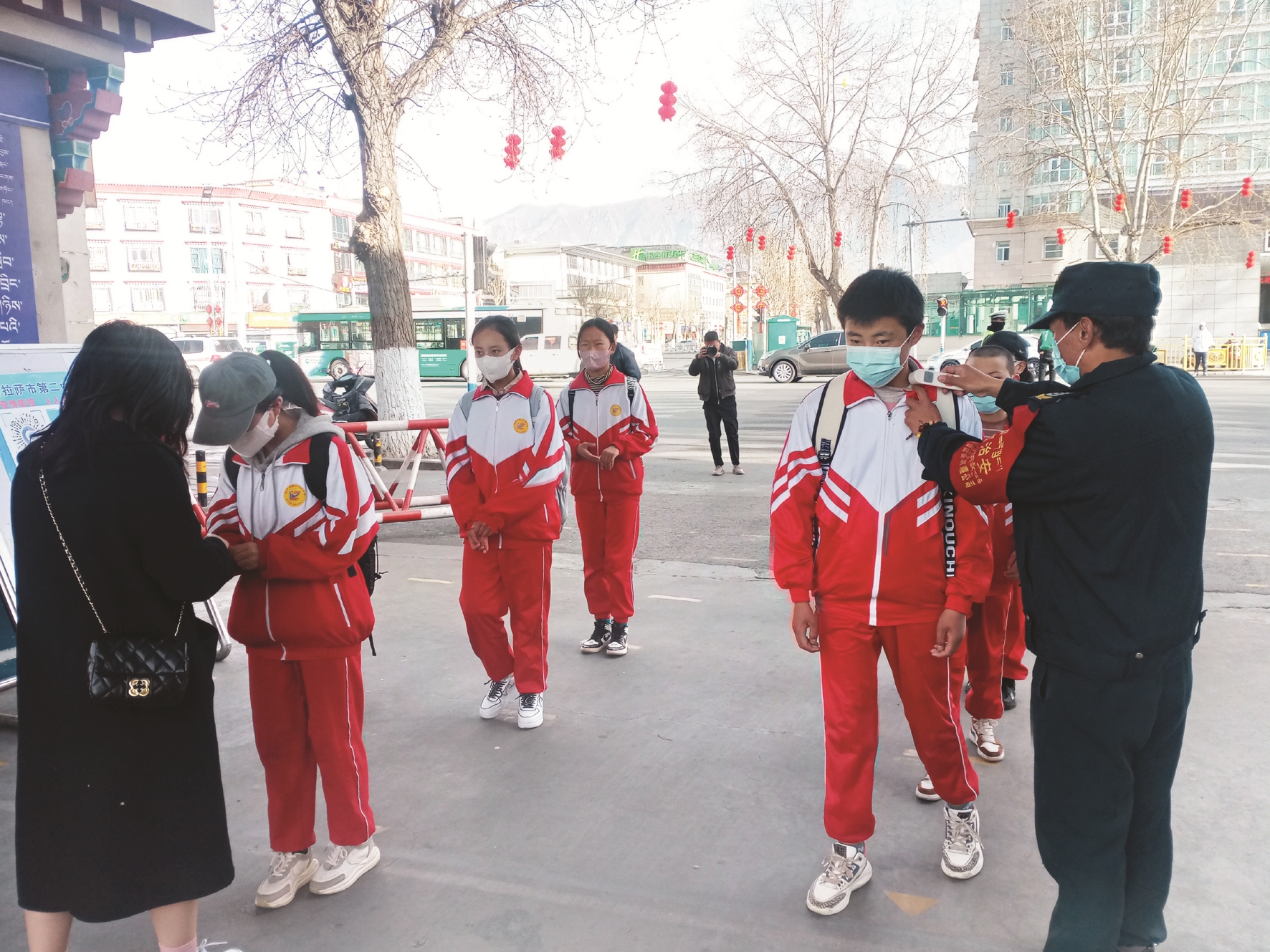 圖為市二中學生入校前接受體溫檢測。拉薩融媒記者 齊永昌攝