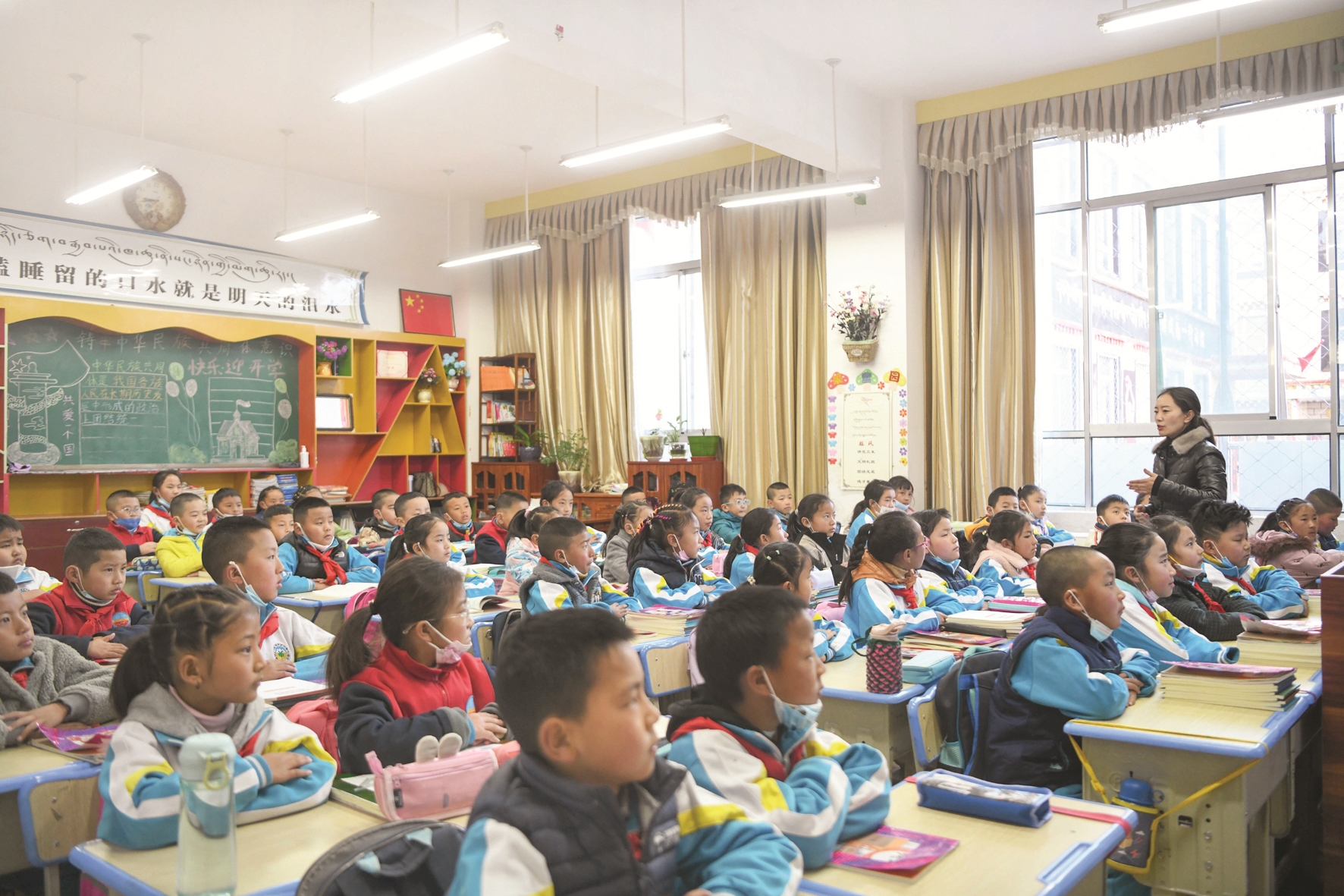拉薩市城關(guān)區(qū)第二小學(xué)的同學(xué)們聆聽(tīng)開(kāi)學(xué)第一課
