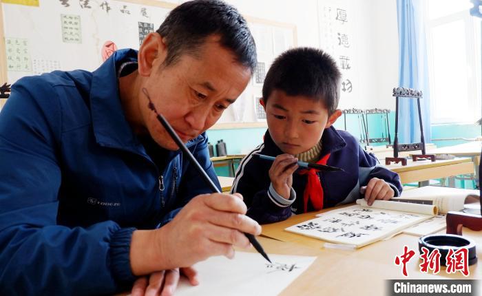 圖為青海省門源縣仙米鄉(xiāng)寄宿制小學少年宮學生在老師指導下寫毛筆字。(資料圖) 李雋 攝