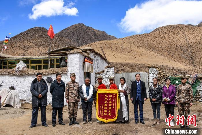 圖為拉薩市林周縣武裝部和退役軍人事務(wù)局慰問旁多鄉(xiāng)入伍兄弟。 朱呈 攝