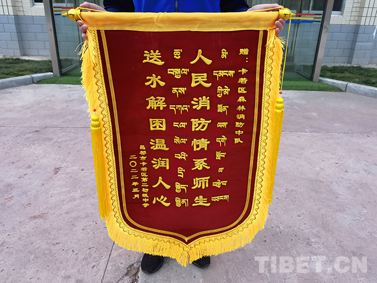 中國(guó)西藏網(wǎng)訊 一面錦旗,凝聚著群眾對(duì)消防隊(duì)伍誠(chéng)摯的謝意和真摯的情感。4月1日,西藏自治區(qū)昌都市卡若區(qū)森林消防中隊(duì)迎來(lái)了一批“特殊的客人”(昌都市第二初級(jí)中學(xué)的師生代表),他們將一面繡有“人民消防情系師生 送水解困溫潤(rùn)人心”的錦旗贈(zèng)送給中隊(duì)全體人員,向中隊(duì)全體消防救援人員表示衷心感謝。