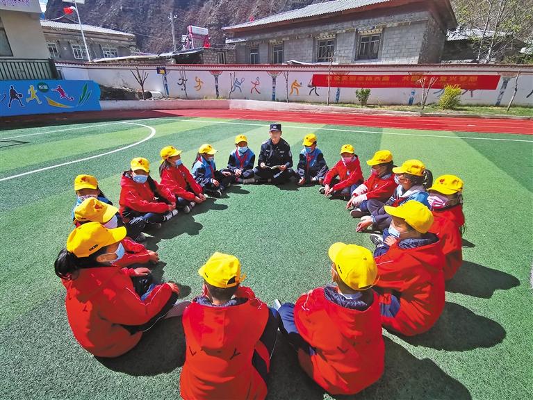 圖為林芝邊境管理支隊(duì)金東邊境派出所民警向小學(xué)生宣講國(guó)家安全知識(shí)。徐華升 攝