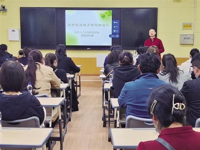 據(jù)拉薩市教育局青少年實踐基地主任扎西平措介紹,家庭教育在孩子成長過程中發(fā)揮著重要作用,為促進學生全面發(fā)展,營造良好的教育生態(tài),拉薩市教育局今年將在全市開展家庭教育系列活動,并將出臺關(guān)于家庭教育工作的實施意見?!案裆;ā奔彝ソ逃嬷v堂在納金小學開設(shè),是此次系列活動的開始,主要是為了達到家校共同育人的目的,為學生健康快樂成長保駕護航。