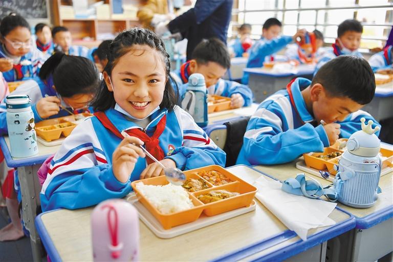 圖為拉薩市實(shí)驗(yàn)小學(xué)東城分校小學(xué)生在享用營(yíng)養(yǎng)午餐(5月12日攝)。新華社記者 張汝鋒 攝