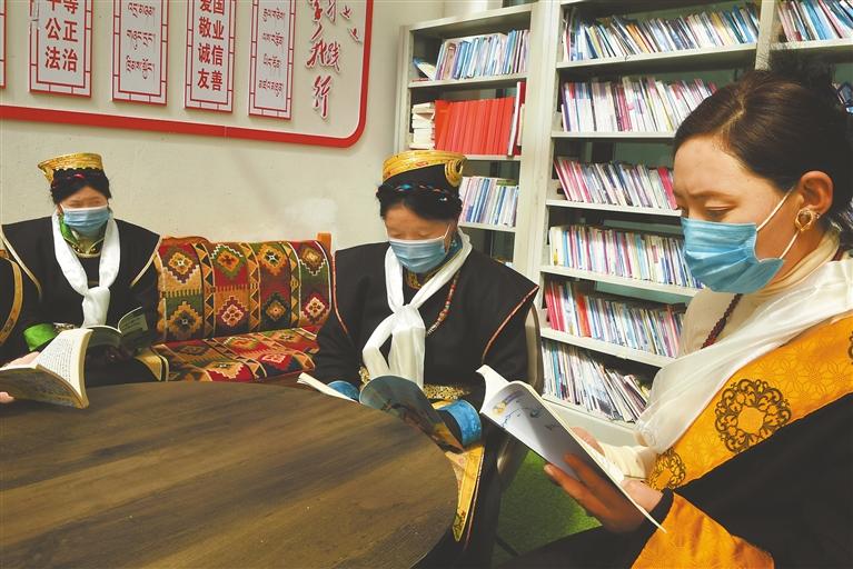 林芝市金達(dá)鎮(zhèn)加龍村群眾在農(nóng)家書屋讀書