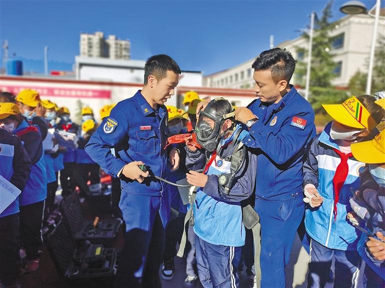 圖為拉薩市堆龍德慶區(qū)姜昆黃小勇希望小學(xué)少先隊(duì)開展“走進(jìn)消防救援隊(duì) 零距離體驗(yàn)消防”活動(dòng)。記者 張宇 通訊員 蘭佳琪 攝