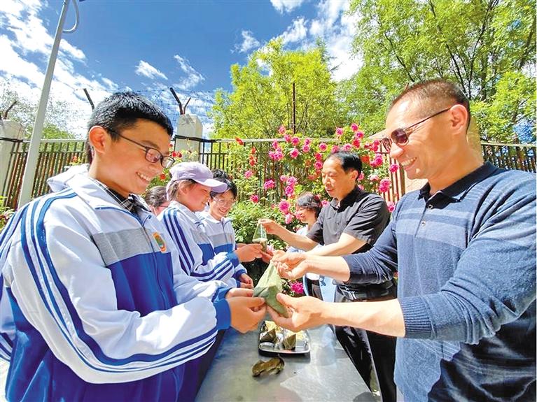 為弘揚(yáng)中華優(yōu)秀傳統(tǒng)文化,促進(jìn)漢藏文化交流,端午節(jié)期間,拉薩市第一中學(xué)教育援藏團(tuán)隊(duì)的老師為學(xué)生送上來自江蘇老家親人包的粽子。