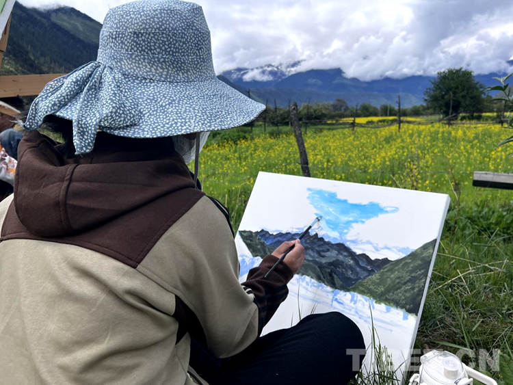 “參加這次活動讓我眼界大開,平時在學校大部分都是靠手機里的照片臨摹繪畫,很少走出教室、面對大自然,這次機會很難得,只想把握時間盡情創(chuàng)作。明年畢業(yè)后,我會回到老家昌都市左貢縣,當一名基層美術(shù)老師,教小朋友們畫畫?!蔽鞑卮髮W藝術(shù)學院大三學生曲西說。