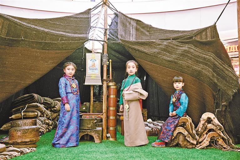 塔耶梅朵美育培養(yǎng)中心的學員展示藏族特色傳統(tǒng)服飾。
