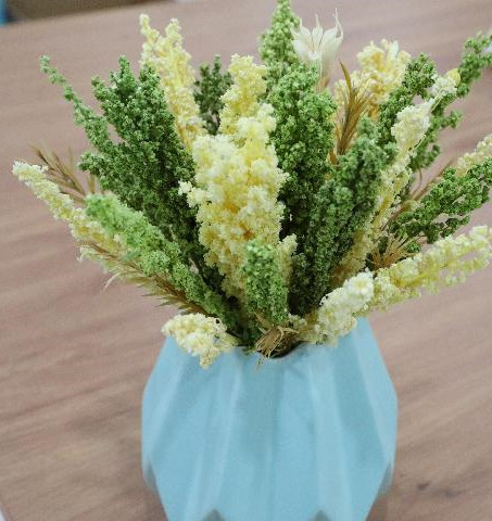 “藜麥花好看,花期卻很短。怎么能留住它的美麗?”陳俊璋日思夜想。在與云南一家花卉企業(yè)達成合作后,陳俊璋引進永生花技術(shù)。2021年,金農(nóng)商公司打造的藜麥永生花在第十屆中國花卉博覽會上驚艷亮相,榮獲多個獎項。