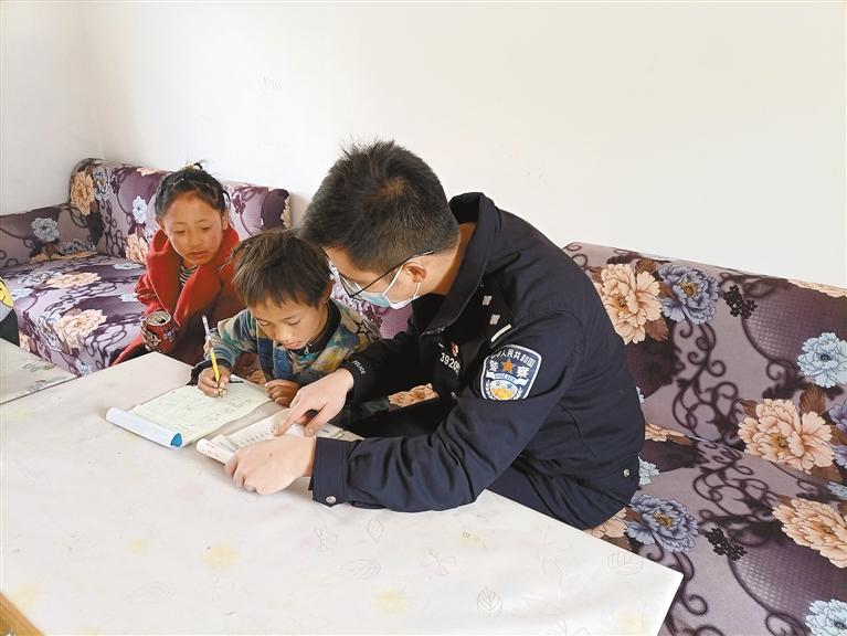 “老師,小扎西最近在學(xué)校表現(xiàn)的怎么樣?”扎西江措在上察隅鎮(zhèn)小學(xué)上一年級(jí),這個(gè)年齡段的孩子,最是調(diào)皮的時(shí)候,每當(dāng)派出所民警下鄉(xiāng)走訪經(jīng)過學(xué)校時(shí),都會(huì)找到小扎西的班主任詢問最近狀況。孩子們?nèi)粘W(xué)習(xí)、生活中的一舉一動(dòng),不僅牽動(dòng)著派出所民警的心,也牽動(dòng)著遠(yuǎn)在千里之外駐村民警化旦的心?!翱络?,孩子們最近還好嗎?我看物流信息顯示圖書和零食已經(jīng)到了,你們下鄉(xiāng)的時(shí)候就把東西帶過去……”2020年,化旦分配到上察隅邊境派出所,喜歡孩子的他,迅速和扎西、拉姆打成一片,平時(shí)只要有空便帶著學(xué)習(xí)、生活用品去看他們,為了迎合孩子們的興趣愛好,化旦也會(huì)從網(wǎng)上學(xué)習(xí)兒童歌曲、舞蹈,與孩子們一起唱歌跳舞。