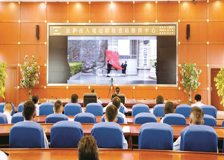 圖為該檢查站民警職工集中觀看“思政云課堂·老兵永遠(yuǎn)跟黨走”主題宣講。(拉薩出入境邊防檢查站供圖)