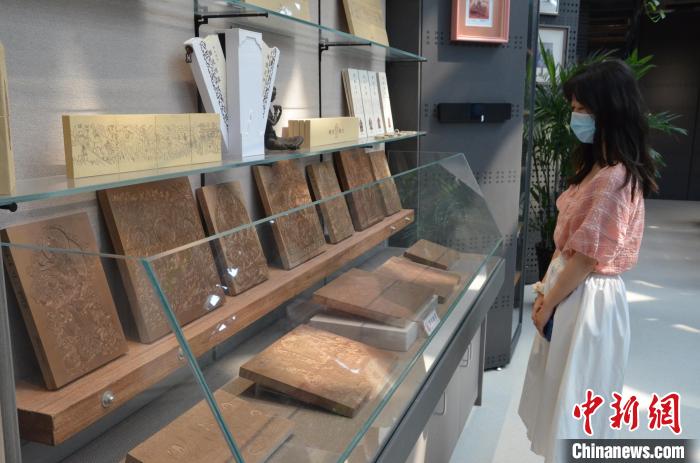 圖為參訪人員在工作室參觀敦煌題材木刻版畫(huà)?!±顏嘄?攝