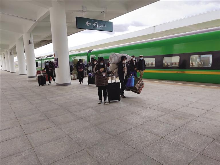這是自治區(qū)有序復(fù)工復(fù)產(chǎn)以來,鐵路部門開行的服務(wù)地方返程人員的首趟定制專列。列車停穩(wěn)后,旅客有序走出車廂,拖著行李,又回到了日喀則的家,再次踏上這座充滿活力的城市,不少旅客非常激動(dòng)。