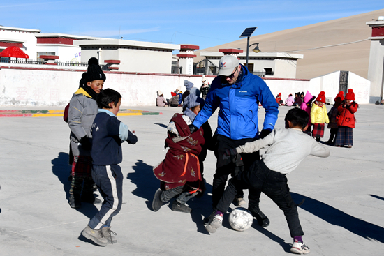 體育教師施剛強(qiáng)在課堂上注意到,藏族孩子比較害羞、靦腆,為了讓學(xué)生們活躍起來,他在課上安排了各種團(tuán)體游戲和比賽,讓每個孩子都能在體育活動中發(fā)揮優(yōu)點(diǎn)、享受快樂。