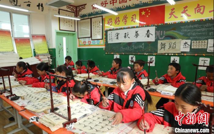 圖為玉樹(shù)市第二完全小學(xué)學(xué)生正在參加少年宮社團(tuán)課?!∮駱?shù)州委宣傳部供圖