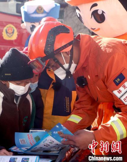 森林消防隊(duì)員正在為小朋友們講解防災(zāi)減災(zāi)知識?!×种ナ猩窒拦﹫D