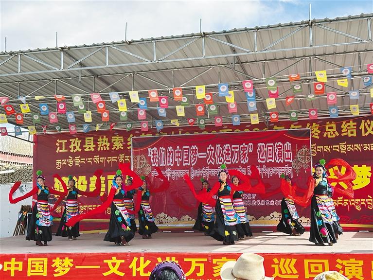 連日來,“我們的中國夢——文化進萬家”巡回演出活動走進日喀則市江孜縣。據(jù)了解,此項活動是由西藏自治區(qū)文化廳以向社會力量購買公共文化服務形式,組織拉薩市城關區(qū)娘熱民間藝術有限公司開展的巡回演出活動?;顒泳o緊圍繞學習宣傳貫徹黨的二十大精神的主題,以走進萬家、服務百姓為宗旨,堅持以人民為中心的工作導向,動員和組織開展形式多樣、內(nèi)容豐富、線上線下相結合的文化活動,滿足基層群眾文化需求,豐富人民群眾文化生活,凝聚奮進新時代新征程的強大精神力量。