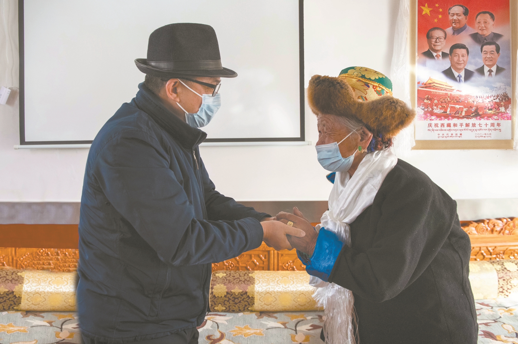 藏歷新年臨近,城關(guān)區(qū)特困人員集中供養(yǎng)中心內(nèi)暖意融融,在工作人員的悉心照料下,老人們幸福地安享晚年生活?!靶履昕鞓?lè)、扎西德勒”,帶著黨和政府的關(guān)懷與溫暖,王強(qiáng)為老人們敬獻(xiàn)哈達(dá),致以節(jié)日美好祝福,關(guān)切地詢問(wèn)老人們的飲食起居和身體狀況,語(yǔ)重心長(zhǎng)地告訴大家黨的光輝照邊疆,要飲水思源,聽(tīng)黨話、感黨恩、跟黨走,保重身體、樂(lè)享晚年。