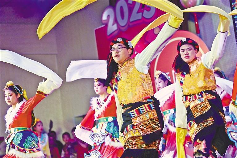 圖為學(xué)生在藏歷新年團拜活動上表演藏族舞蹈。 新華社記者 李一博 攝
