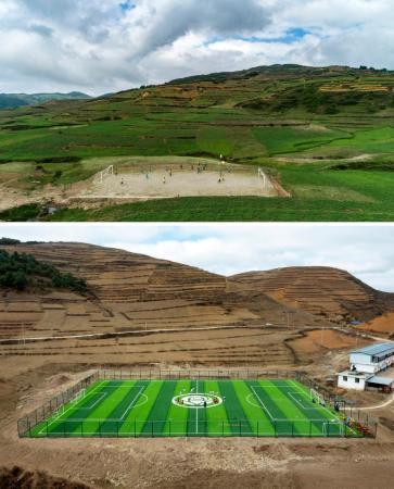 “球場(chǎng)剛建好時(shí),孩子們開(kāi)心地在上面打滾。”曲比史古校長(zhǎng)給記者看了一段球場(chǎng)剛建好后的視頻,視頻中,新球場(chǎng)覆蓋著一層薄雪,伍作和隊(duì)友們穿著短袖球服,全力奔跑。