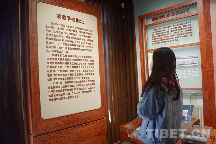 舊址西院,“蒙藏學(xué)校舊址專題展”主要展示舊址歷史沿革和革命活動,蒙藏學(xué)校學(xué)生參加五四運動;李大釗、鄧中夏、趙世炎等對蒙藏學(xué)校青年的馬克思主義啟蒙和革命引導(dǎo);烏蘭夫、多松年 等 蒙藏學(xué)校進步青年參加校內(nèi)外革命活動……突出展現(xiàn)中國共產(chǎn)黨成立后在這里組織開展革命斗爭的歷史?!爸腥A一脈 同心筑夢”主題展分為“共同締造新中國”“團結(jié)建設(shè)新社會”“攜手奮斗繁榮路”“同心奮進新時代”4個部分。展出照片420多幅,實物、文獻、檔案280余件,藝術(shù)展 項 18項,重點展示新時代民族工作取得的新的歷史性成就。