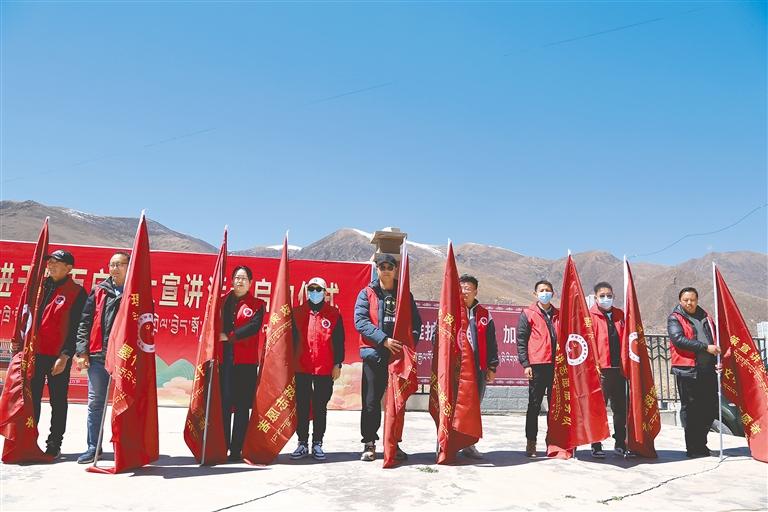 近日,在拉薩市墨竹工卡縣開展的“黨的二十大精神進(jìn)千家萬(wàn)戶”大宣講活動(dòng)啟動(dòng)儀式上,墨竹工卡縣鄉(xiāng)鎮(zhèn)宣傳委員代表和村居農(nóng)牧民宣講員代表作了交流發(fā)言,相關(guān)工作人員為各鄉(xiāng)鎮(zhèn)和縣直部門理論政策宣講服務(wù)隊(duì)進(jìn)行了授旗,縣委黨校老師就如何扎實(shí)有效推動(dòng)黨的二十大精神和全國(guó)兩會(huì)精神在基層落地落實(shí)開展了宣講培訓(xùn)。