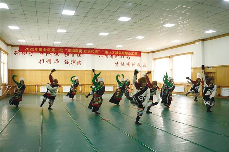 2022年3月,為進(jìn)一步做好全區(qū)縣區(qū)舞蹈演員專業(yè)技能的提升工作,自治區(qū)歌舞團(tuán)啟動了全區(qū)第二批“駐團(tuán)跟崗、以訓(xùn)代培”日喀則市、阿里地區(qū)藝術(shù)團(tuán)舞蹈演員培訓(xùn)工作。[詳細(xì)]
