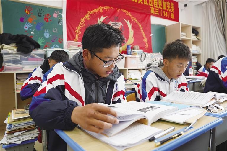 “叮鈴鈴”……隨著下課鈴聲響起,教室瞬間“熱鬧”了起來。有的同學(xué)走出教室活動(dòng)久坐的身體、有的同學(xué)拿出習(xí)題冊(cè)和同桌小聲地討論、有的同學(xué)向老師請(qǐng)教不明白的知識(shí)點(diǎn)……清風(fēng)拂過,暖暖的陽光照在這些青春的身影上,演繹出一首屬于青春的奮斗頌歌?!艾F(xiàn)在是最緊要的關(guān)頭,必須把全部精力投入到學(xué)習(xí)中,爭(zhēng)取多掌握一些知識(shí)點(diǎn)?!备呷?2班學(xué)生索朗旦增說,“我的目標(biāo)是西南政法大學(xué),希望通過自己的努力能實(shí)現(xiàn)這個(gè)夢(mèng)想?!?/p>
