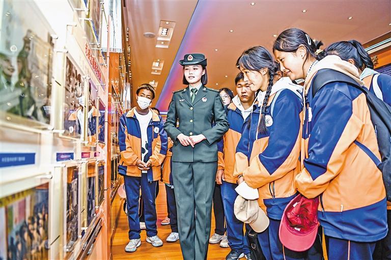 走進(jìn)綠色軍營,感悟軍旅生活?;顒又?,近200名師生共赴軍營,師生在解說員的引導(dǎo)下,先后參觀了軍史館、軍史長廊、官兵宿舍等,對常規(guī)武器裝備、單個軍人隊列動作等親身體驗,真實地感受了軍人訓(xùn)練生活。“國無防不立,民無兵不安?!眮碜匀湛t市第三高級中學(xué)的學(xué)生旦增扎西說,“國防教育活動讓我對駐地部隊有了更深的了解,對金珠瑪米有了更深的認(rèn)識。”