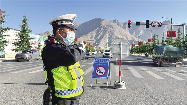 6月7日,記者駕車前往拉薩市第二中等職業(yè)技術(shù)學??键c,一路暢通無阻,拉薩交警早早地就來到各考點執(zhí)勤,疏導(dǎo)交通。在考點周圍,路段上“禁鳴”“減速慢行”等交通標志牌已經(jīng)設(shè)置完畢,社會車輛在交警的指揮下快速通行。家長平措卓嘎告訴記者:“孩子今天是學校統(tǒng)一送到考點的,我們家長一路過來看到每個考點周圍都有交警執(zhí)勤,周邊交通也很暢通,非常感謝交警同志的辛勤工作?!?/p>