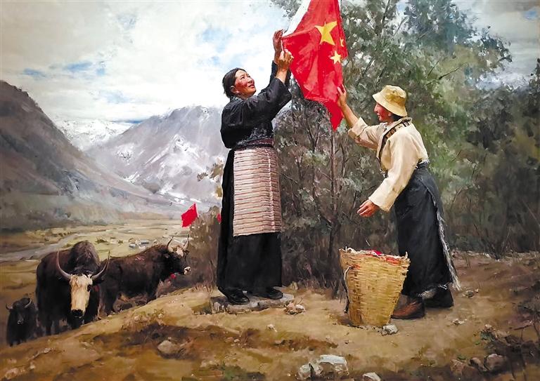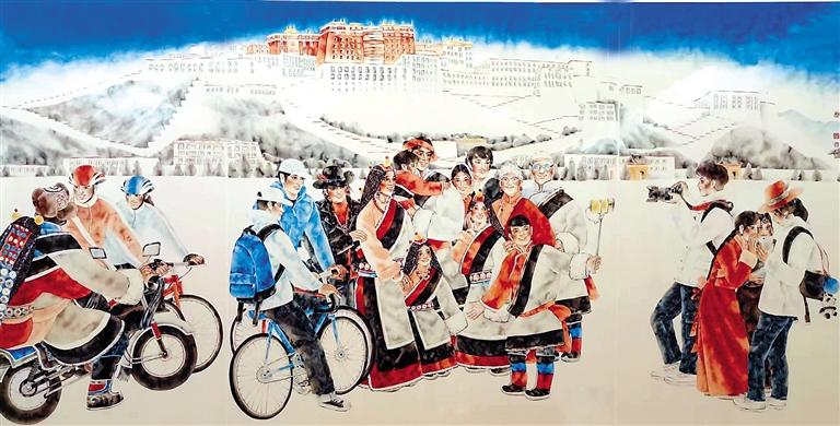 隨著一系列支持政策的持續(xù)推進和西藏各族兒女的團結(jié)奮斗,西藏的經(jīng)濟發(fā)展和民生水平都得到了大幅度提升。同時,關(guān)注西藏發(fā)展現(xiàn)實、進行美術(shù)創(chuàng)作的藝術(shù)家日漸增多,一件件優(yōu)秀美術(shù)作品應運而生,并且在全國重要展覽中精彩呈現(xiàn),向人們?nèi)?、立體地展現(xiàn)了新時代西藏人民生活的美好圖景。2022年秋季在中國美術(shù)館展出的“第13屆中國藝術(shù)節(jié):全國優(yōu)秀美術(shù)作品展覽”中,有大量表現(xiàn)西藏民族風情和民生發(fā)展題材的美術(shù)作品,從作品構(gòu)思到藝術(shù)表現(xiàn),體現(xiàn)出鮮明的民族文化特色和民生繁榮景象,展現(xiàn)出美術(shù)創(chuàng)作者深植心底的鑄牢中華民族共同體意識創(chuàng)作理念。
