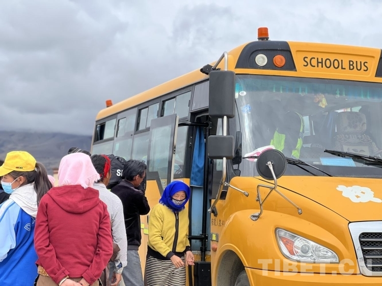 圖為家長送孩子們上校車 攝影:德吉卓瑪