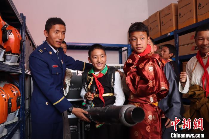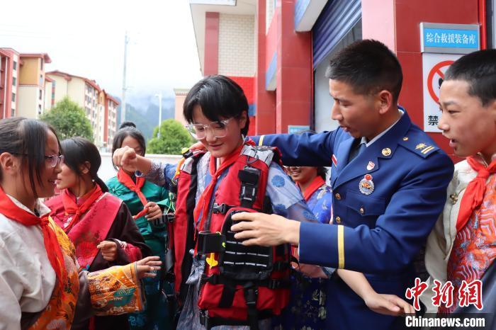 圖為消防員正在為學(xué)生普及防災(zāi)減災(zāi)知識。西繞拉翁 攝