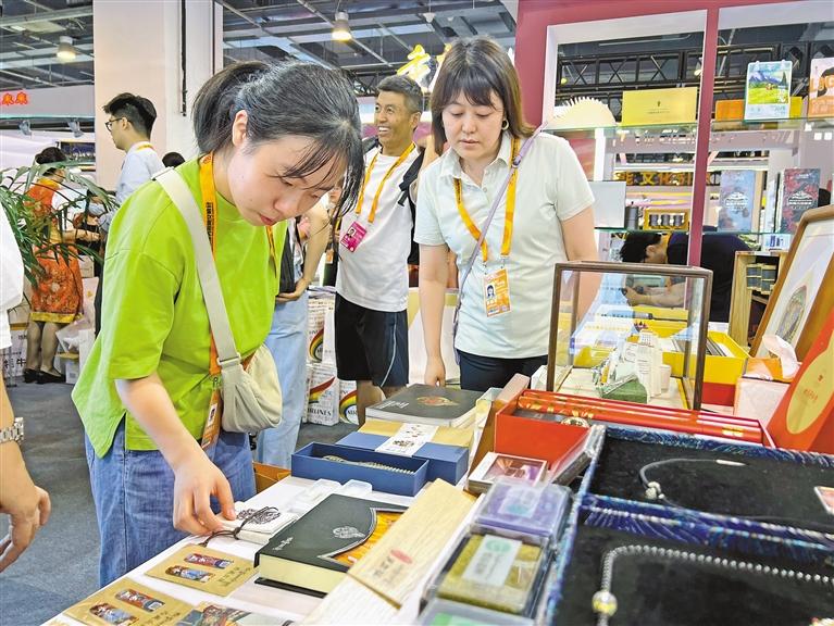 圖為觀眾在服貿會西藏展廳了解、挑選文創(chuàng)產(chǎn)品。記者 張姝 攝