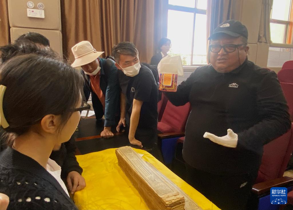 西藏自治區(qū)古籍保護(hù)中心專家與現(xiàn)場與會(huì)專家互動(dòng)分享古籍文獻(xiàn)知識(shí)。新華社記者 春拉 攝
