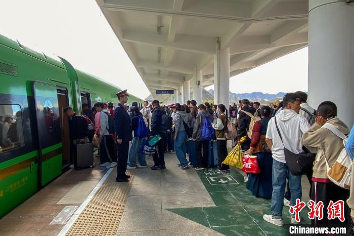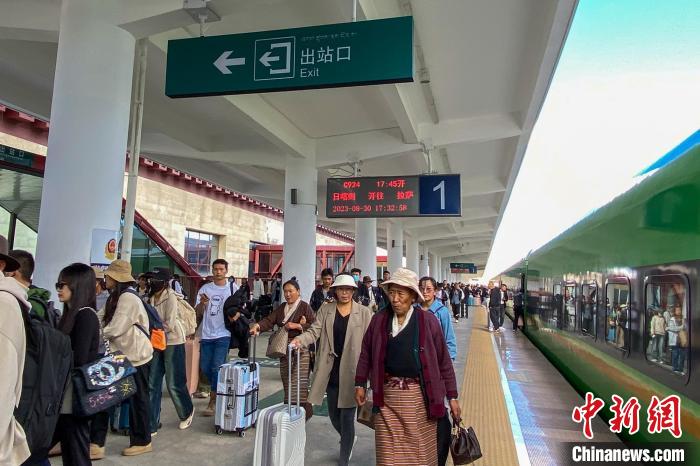 圖為暑運(yùn)期間,旅客在日喀則火車站搭乘高原復(fù)興號動(dòng)車組出行。日喀則火車站 供圖